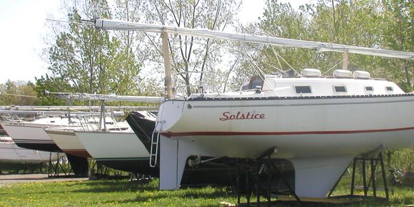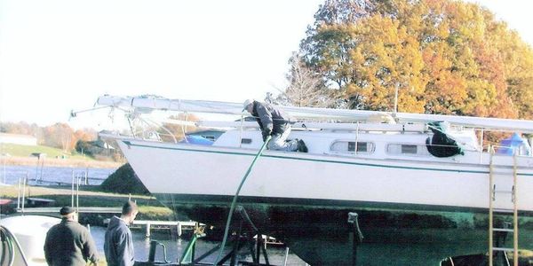 At Salmon Country, we specialize in the hauling and outfitting of sailboats of all sizes. Whether on a custom cradle or stands we can haul you and set you up for the winter or just set you up to get some work done. You can work on your own boat or hire us to do the work for you. We recently re-powered this Hunter 30 with a new Westerbeke Diesel and a Maxprop feathering prop.